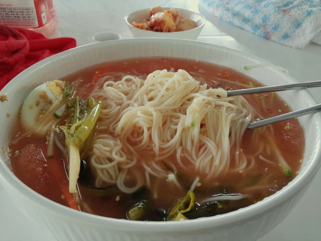 - 열무김치 국수 : 소면을 삶아 찬물에 헹군 후 물기를 뺍니다. 그리고 소면을 담고 열무김치와 김치국물을 넣은 후, 설탕과 식초를 약간 섞어 맛을 조절합니다. 참기름을 뿌리고 기호에 맞는 오이 채와 삶은 달걀을 올려줍니다.