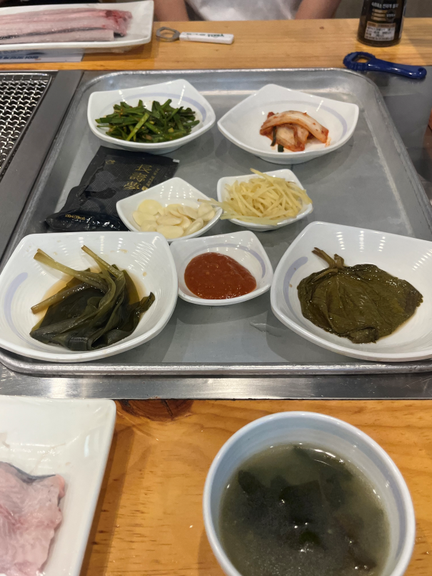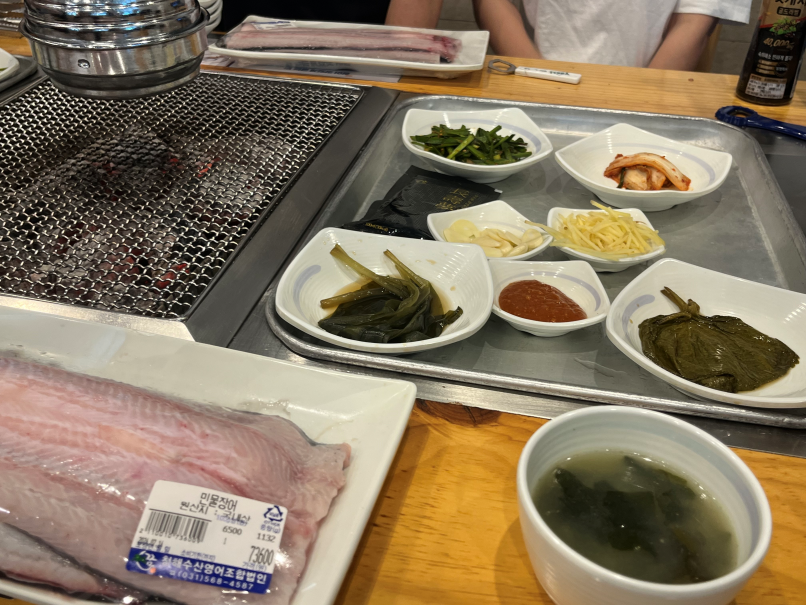 장어를 고른 후, 계산대로 가서 계산하면 자리를 안내해주십니다.준비된 자리로 가면, 테이블에 반찬이 세팅되어 있고,