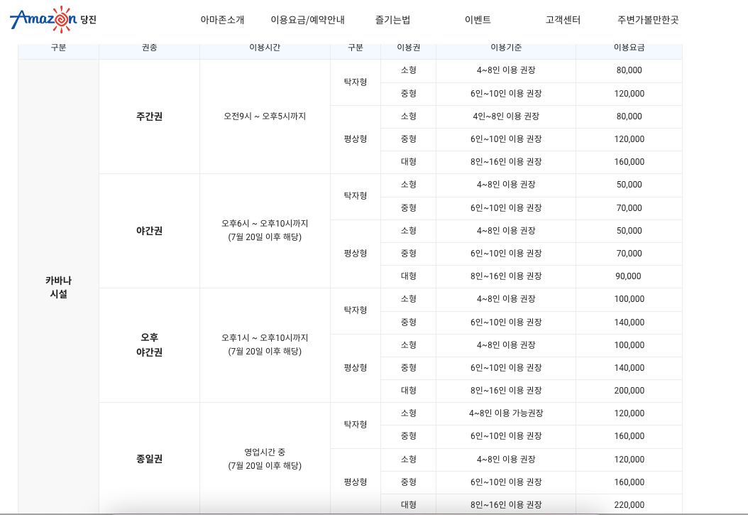 카바나 : 오픈이벤트 기간(~7월19일) 소형 60,000원, 중형 90,000원, 대형 120,000원