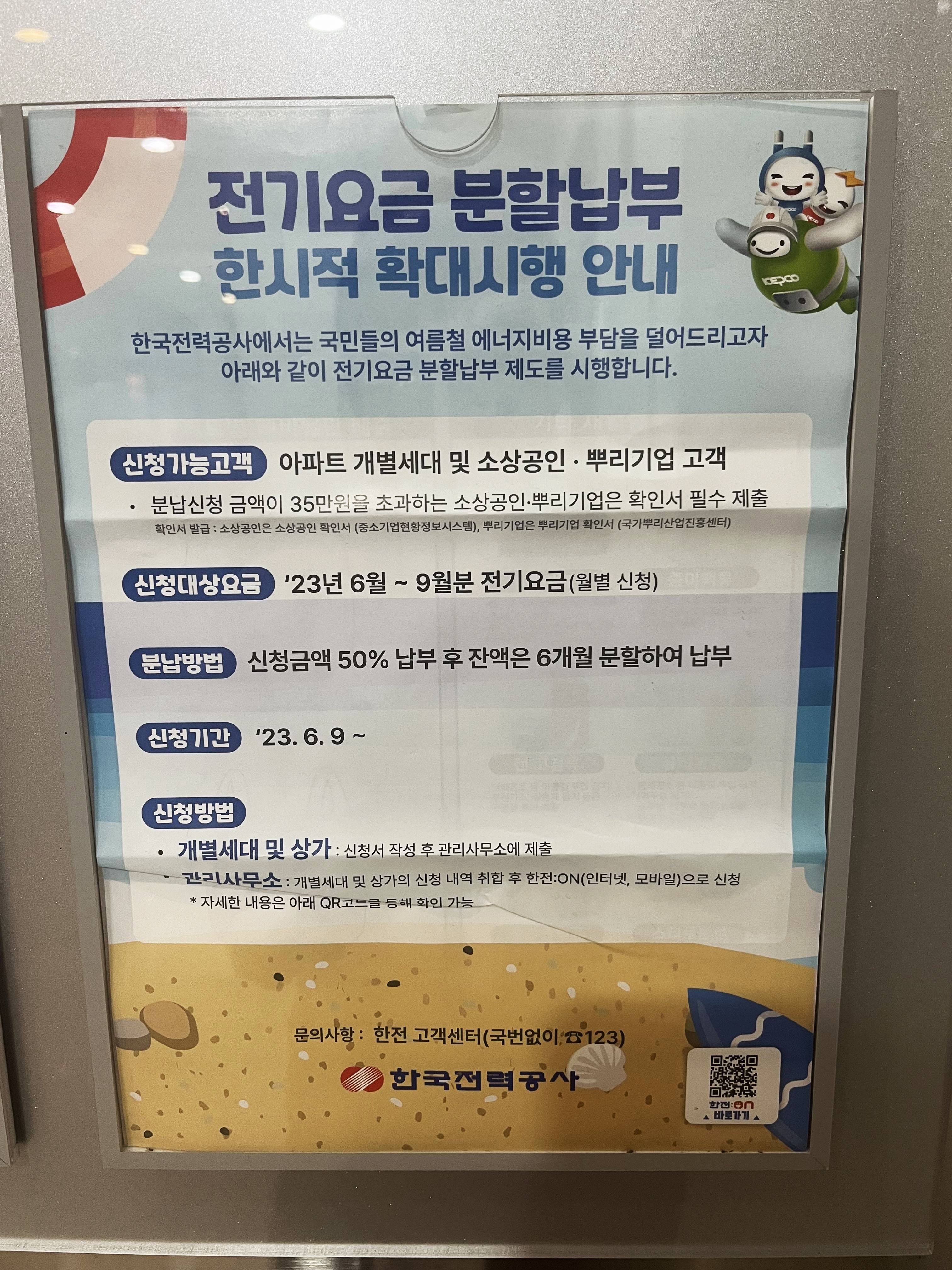 한국전력공사에서는 국민들의 여름철 에너지비용 부담을 덜어드리고자 분할납부 제도를 시행한다고 합니다.