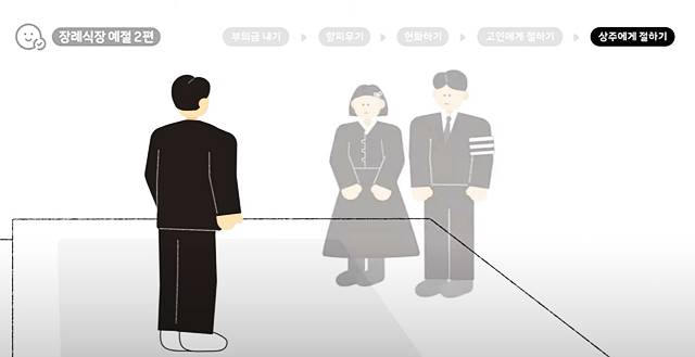 빈소 앞에서 잠시 묵념하거나 두 번 절을 한 후, 상주와 맞절할 때에는 고개를 숙여 예의를 표합니다.