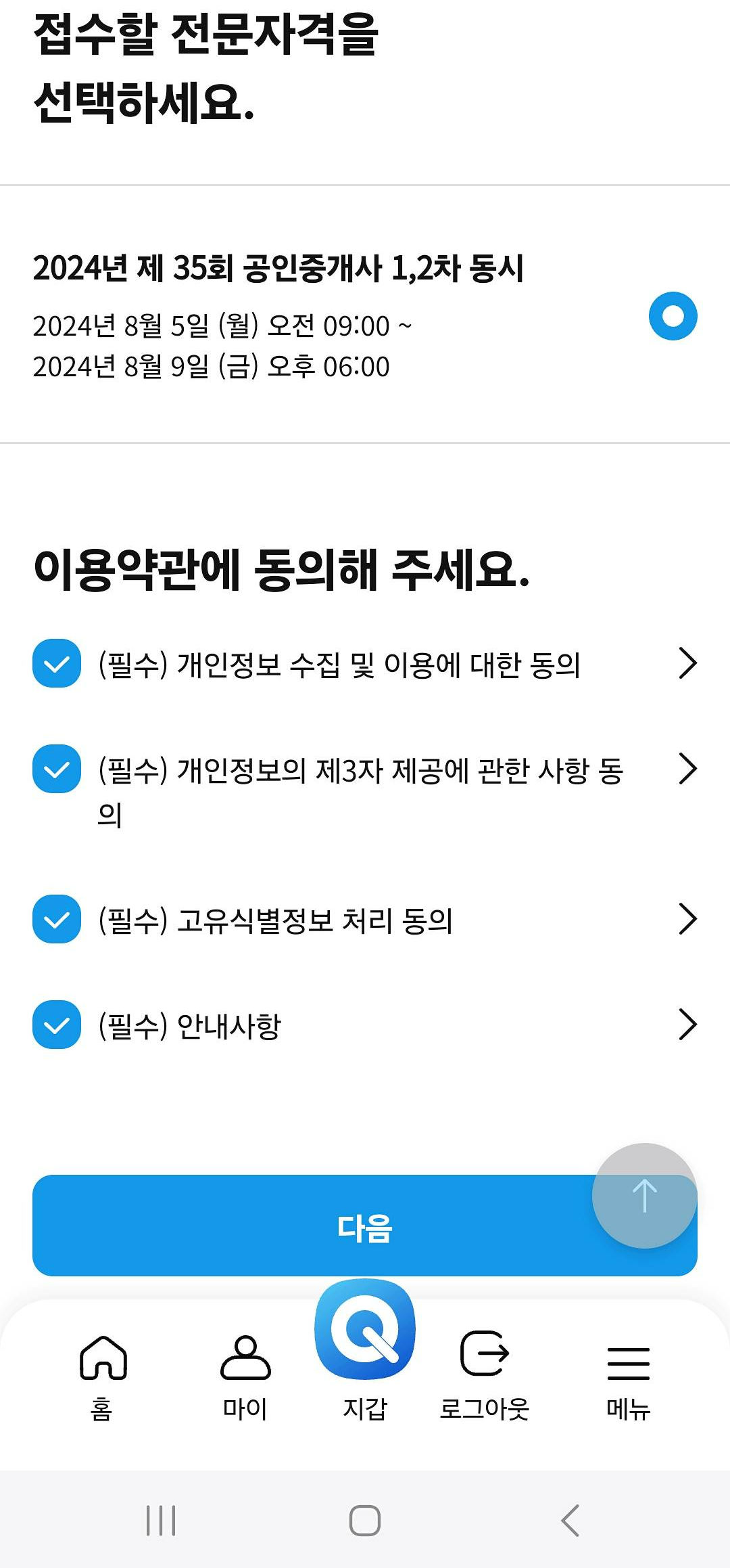 공인중개사 시험 접수 큐넷 모바일