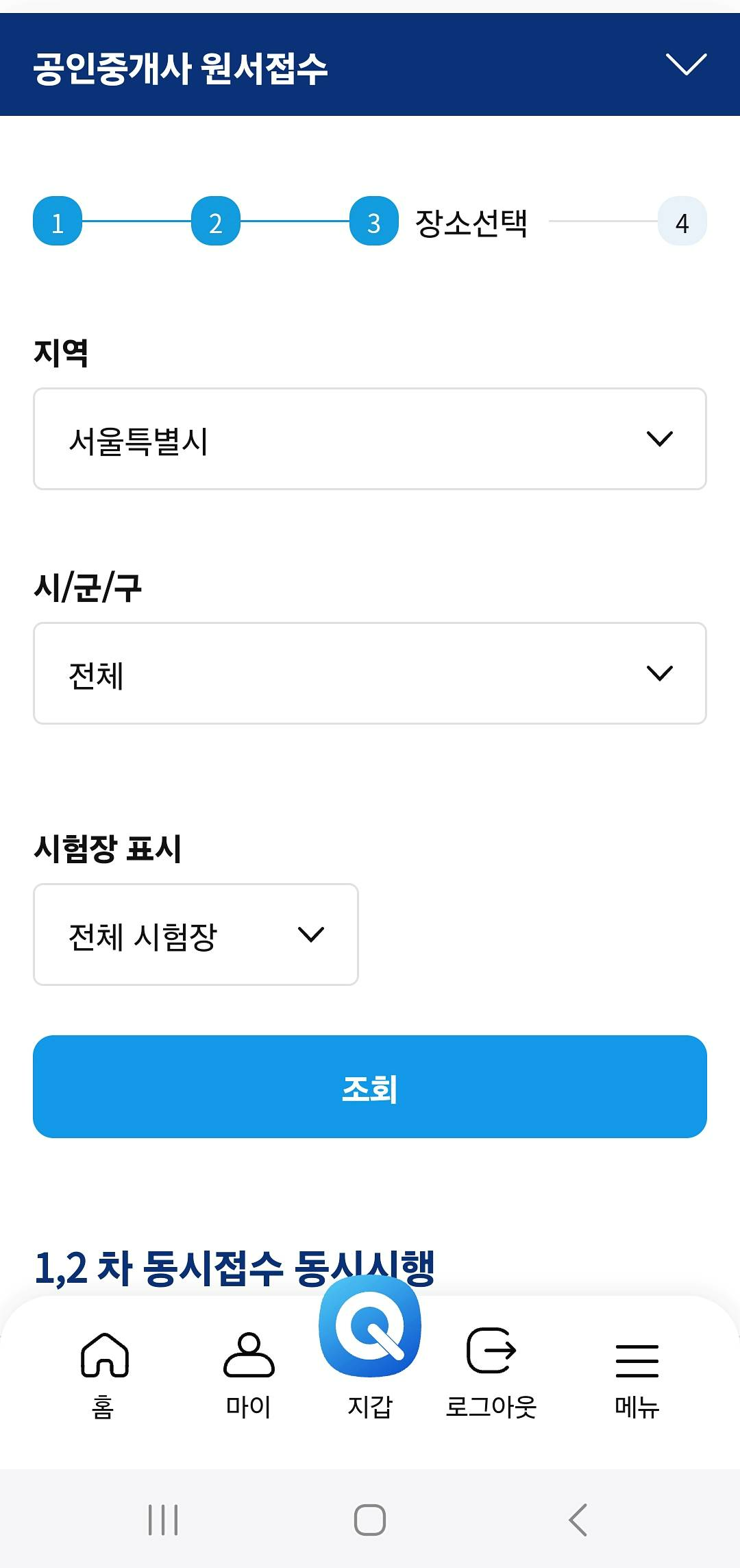 내가 1차만 볼것인지, 1차는 합격했고 2차를 볼 것인지, 1차+2차 동시접수를 할것인지. 시험장소가 달라지기때문에 꼭 잘 선택하는것이 중요합니다.