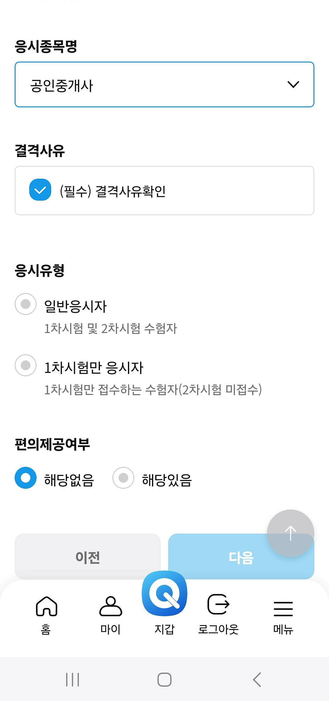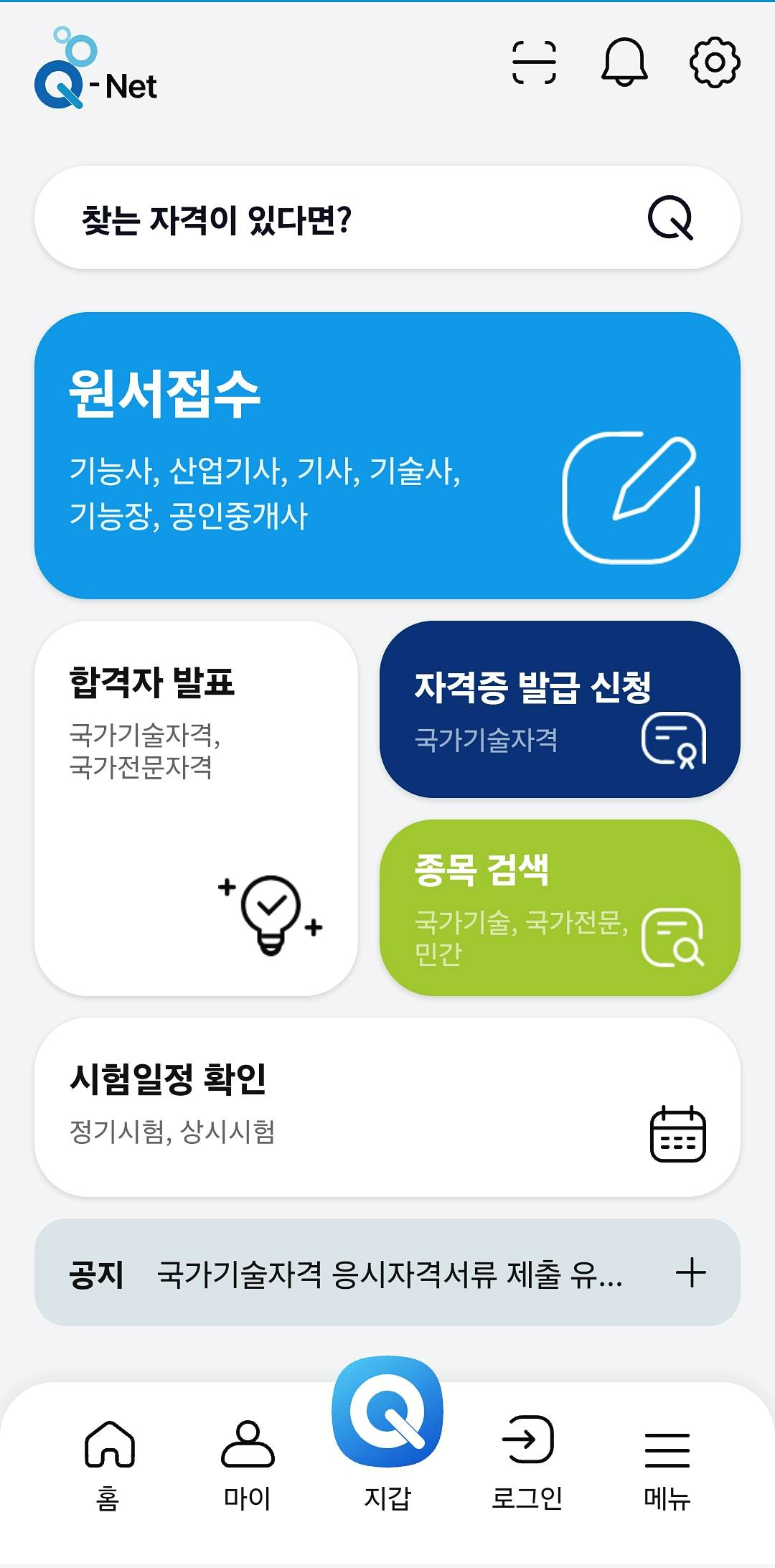 홈페이지에서 시험접수가 되지 않는 다면 핸드폰 어플에서 '큐넷'을 검색하신 후 로그인하시면