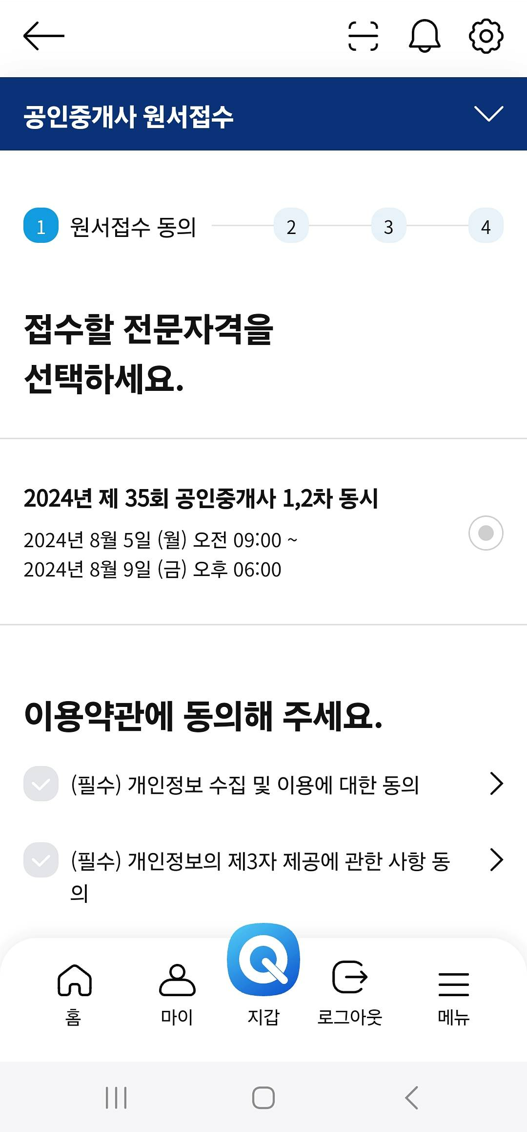 제35회 공인중개사 시험접수 방법은 큐넷 홈페이지에서 가능하고, 모바일 핸드폰 어플로도 가능합니다.